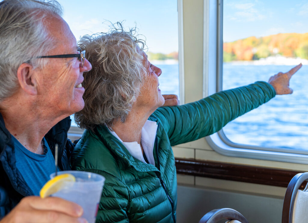 Every seat is the best seat on board. Take in the beautiful lake and its stunning shoreline estates.
